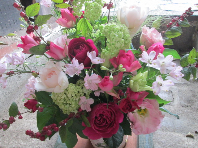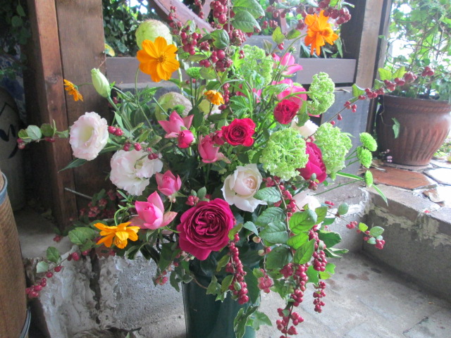 今週の活け込みにも、紅小町や輸入のビバーナムなどと併せて~